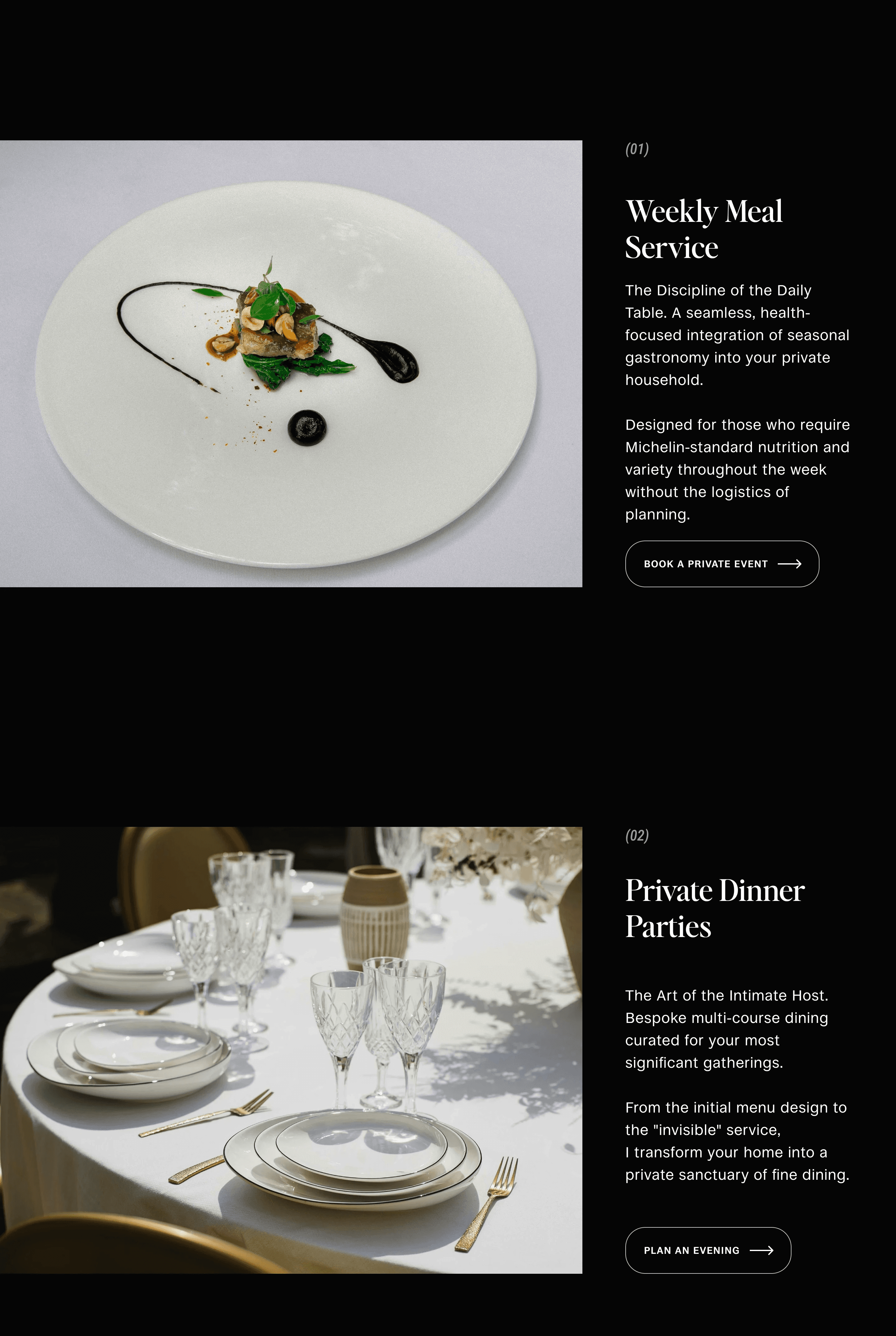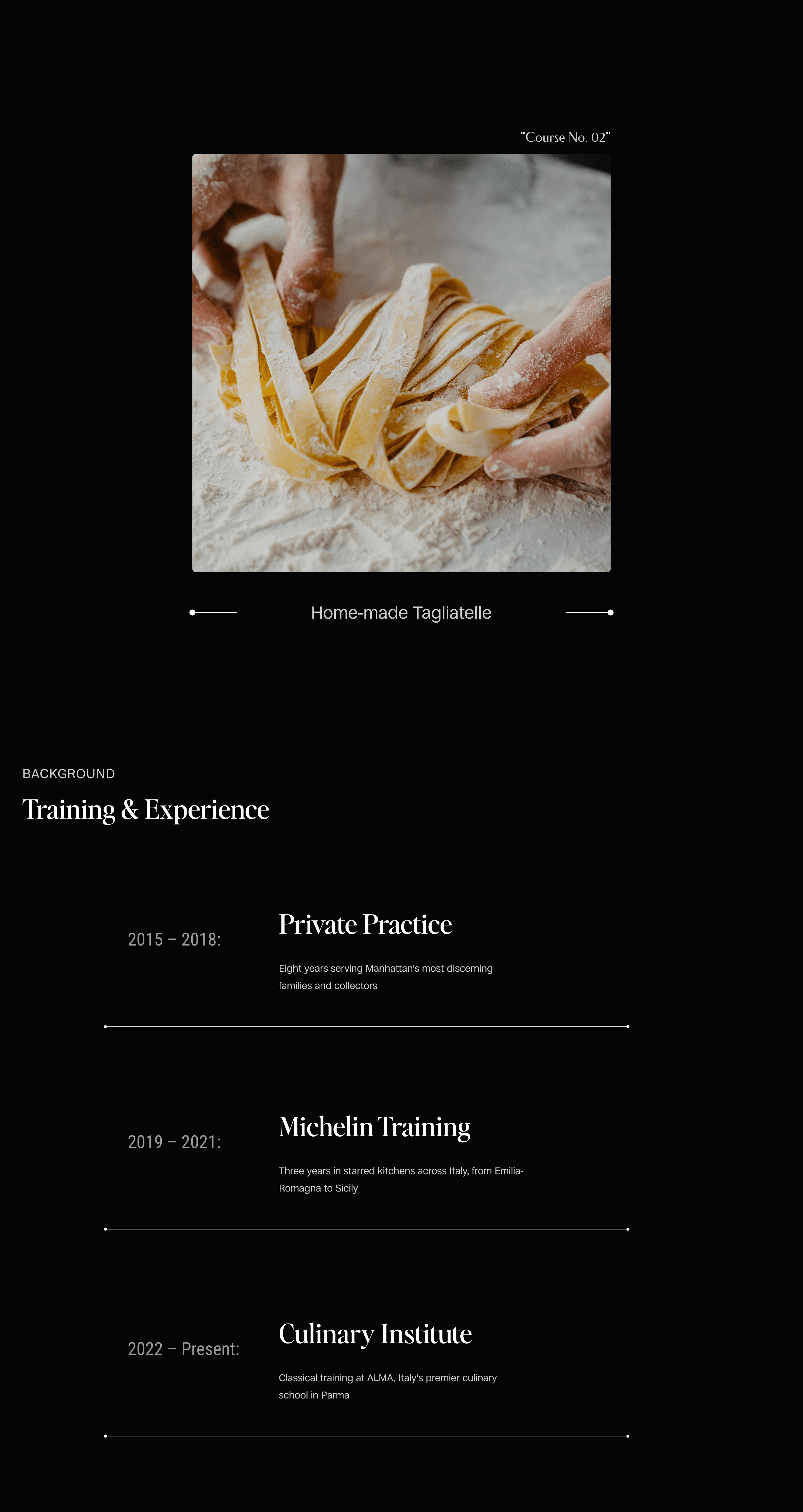 The website communicates the personal, tailored nature of the chef’s work, creating connection before the first meal.