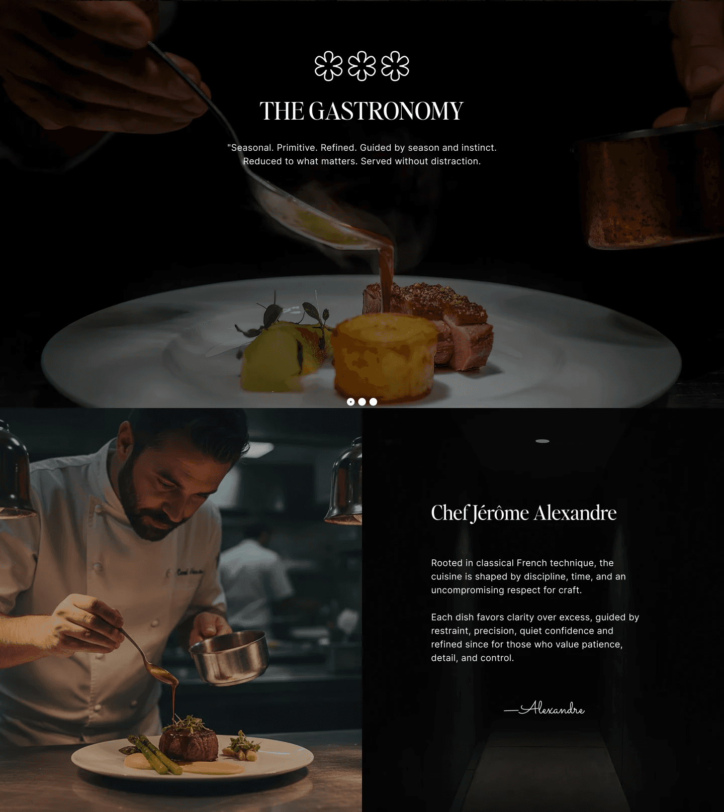 Content is curated to build progression, reflecting the refinement and ritual of the restaurant experience.
